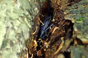 こちらのまだ樹液の匂いが漂うハルレの樹皮裏に黒いものを発見!