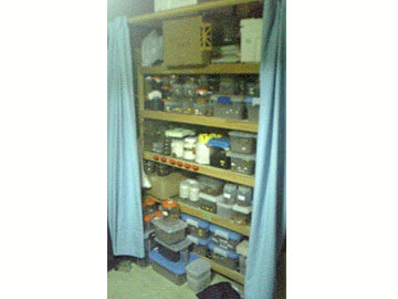 飼育スペースの方は来客時、カーテンを引きめかくしできるようにしております。