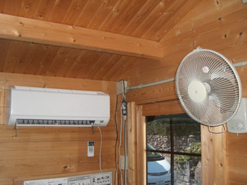エアコンと扇風機を使って部屋の温度を通年21~26度で管理しています。
