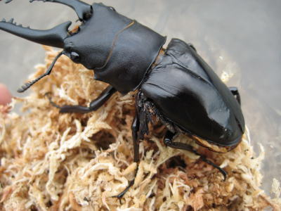上の写真は菌糸ビンで通常飼育(単頭飼育)を行い羽化したジャワギラファです。 飼育温度も蛹室の状態も特に悪い状態ではなく原因は分からないのですが、上翅が開いて羽化してしまいました。