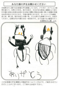 京都府 湯浅 様 2025 12/16 生体 80代 2022年7月12日2025年12月16日 かぶと虫のペアを送って下さり、早速マットの中に入れました。来年のたまごが楽しみです。大切に育てて来年はたくさんのペアが育つ事を楽しみにしています。 生体 80代 よかったらシェアしてね! URLをコピーしました! URLをコピーしました! 千葉県 柳田 様 兵庫県 横山 様 おすすめ記事 てすと投稿です。 2025年12月23日 東京都 澤井 様 2025年12月17日 千葉県 平野 様 2025年12月15日 群馬県 はやしかわ 様 2025年11月21日 群馬県 はやしかわ 様 2025年11月21日 奈良県 栗原 様 2025年11月21日 群馬県 鈴木 様 2025年11月21日 大阪府 ささべ 様 2025年11月21日