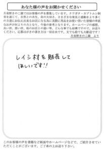 送っていただきありがとうございました。完璧な包装をしていただき、ありがとうございました。幼虫も大きいし、やぱり月夜野さんのものは立派です。他社よりずば抜けている。今、カブトムシの幼虫は約140ほどいます。成虫になったら近くを通う小学生にあげるのが楽しみです。月夜野ガンバレ!