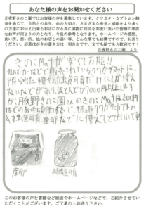 オキナワヒラタ・アマミノコ(幼)・国産ノコ(成)無事に届きました。オキナワヒラタは出荷前に爪欠けということでしたが、気にならない程度です。来春、産卵に頑張ってもらおうと思います。数年前に購入したきのこマットで国)オオクワ幼虫飼育していますが、大きくなっています!こちらも来春のう化が楽しみです!