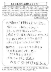親切な対応ありがとうございます。又、色々なパンプありがとうございます。とても参考になりました。これからも夏の暑さが心配ですが、完全室内ブリーディングをしているので、まずは大丈夫だと思っておりますが、菌糸ビン作りが心配です。これからは、出来る限りきのこ園さんを利用しようと思います。