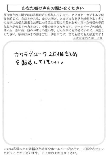 カワラブロック20個まとめを販売してほしい。