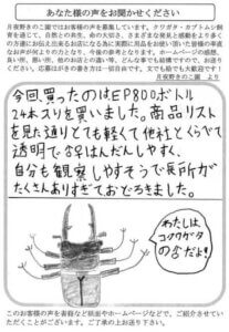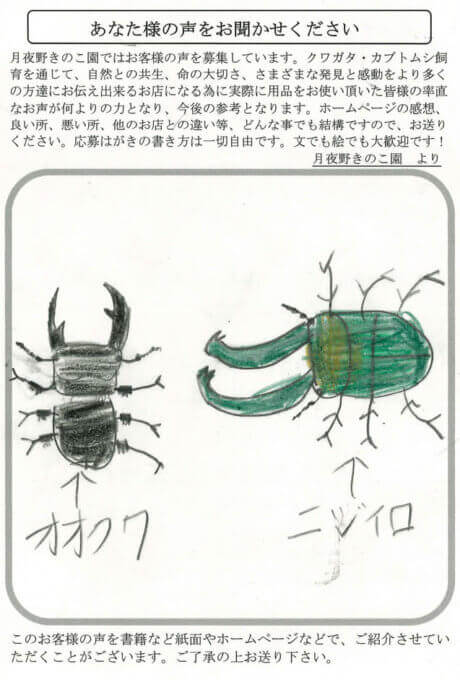 ・・・・クワガタ新聞・取扱い説明書も入っており、知識不足で助かり、また幼少期に山林に出掛けた記憶がよみがえり心おどる思いをしました。