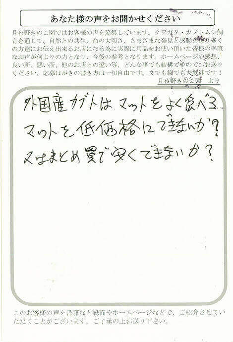 大阪府 吉岡 様 低価格 X Facebook はてブ LINE Pinterest コピー 2013.06.03 外国産カブトはマットを良くたべるマットを低価格にできないか?又はまとめ買いで安くできないか?【月夜野きのこ園】より送料は1注文に1個口分だけとなりますのでケースで2個3個お買い上げ頂くとお買い得となります。どうぞ宜しくお願い申し上げます。