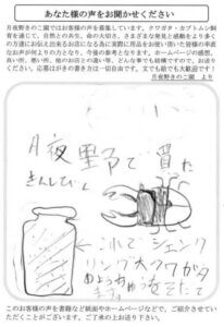 一昨年、ノコギリクワガタのオスを友人から頂き、秋が来ると死にました。息子はワンワンとないて、来る日も来る日もクワガタの話をしていました。昨年ノコギリクワガタのつがいを友人から頂き、卵が19個うまれ、今現在、世話をしています。小さな卵から幼虫がどんどんと大きくなっていくのは嬉しいことですが、初めてのことなので、こちらのホームページを参考にしています。