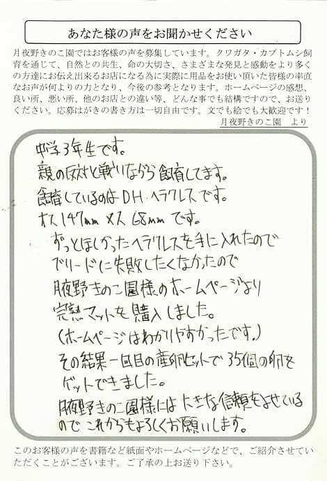 飼育しているのはDH・ヘラクレスです。
