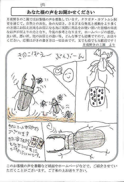 大阪府 梅田 様 きのこMat X Facebook はてブ LINE Pinterest コピー 2014.02.18 きのこマットありがとう ございます きのこ園さまから とりよせている虫は とてもかっこいいです。