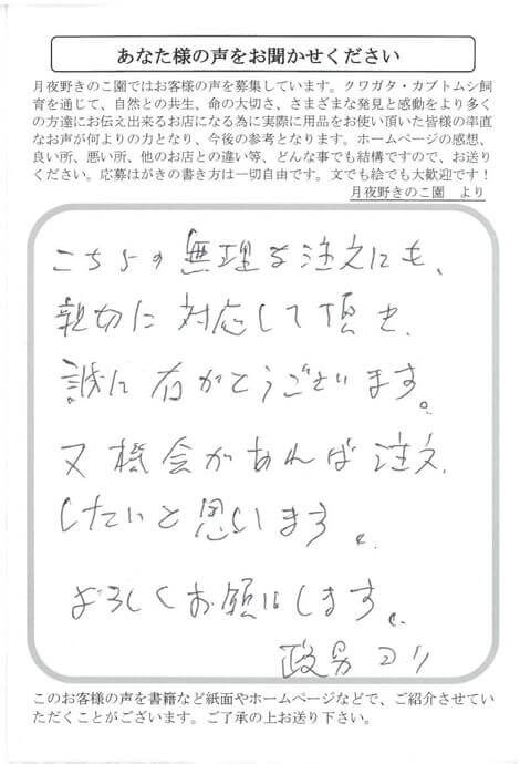 宮城県 岩井 様 対応 X Facebook はてブ LINE Pinterest コピー 2017.10.04 こちらの無理な注文にも、親切に対応して頂き、誠にありがとうございます。又機械があれば注文したいと思います。よろしくお願いします。政男ヨリ