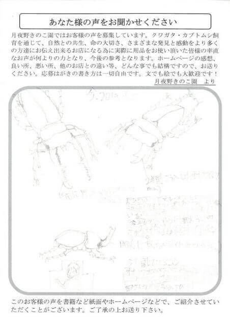 山形県 茂木 様 イラスト X Facebook はてブ LINE Pinterest コピー 2019.05.01 おひさしぶりです。シーズンになったのでうきうきして出しています!いつもていねいなつつみ方でとてもうれしい!今年もセレベスヒラタを買おうと思っています!たくさんブリードできるようのがんばります!月虫がんばって下さい!