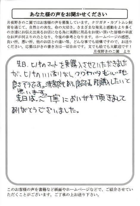 先日、ヒノキのマットを購入させていただきました