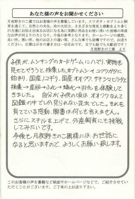 子供が、ムシキングのカードゲームにハマリ、実物を
