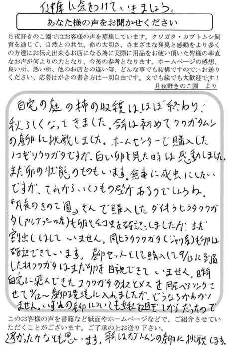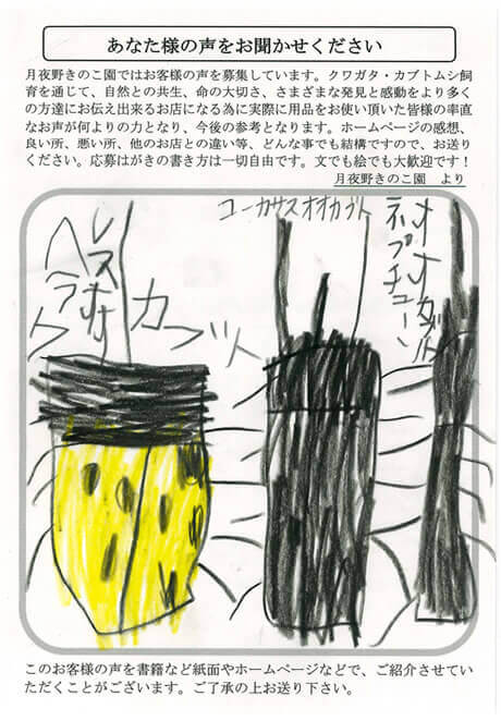 月夜野きのこ園からとどいた国さんオオクワガタのようちゅうをまる1日おいたE800のきんしビンに入れました。冬のうちはなにもおこらなかったけど、5月になると3週間ぐらいで70%いじょうたべてくれたのであんしんしました。ちなみに今はE1400のきんしビンに入れてます。