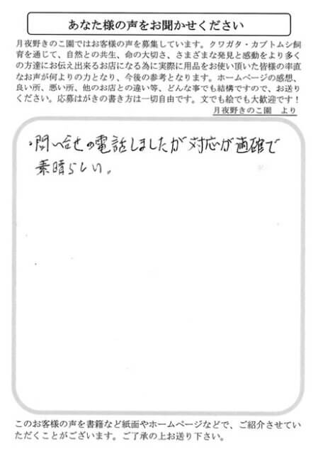 問い合わせの電話しましたが対応が適確で素晴らしい。