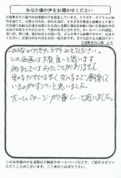 "みんなのクワがガタ・カブトみせてください"