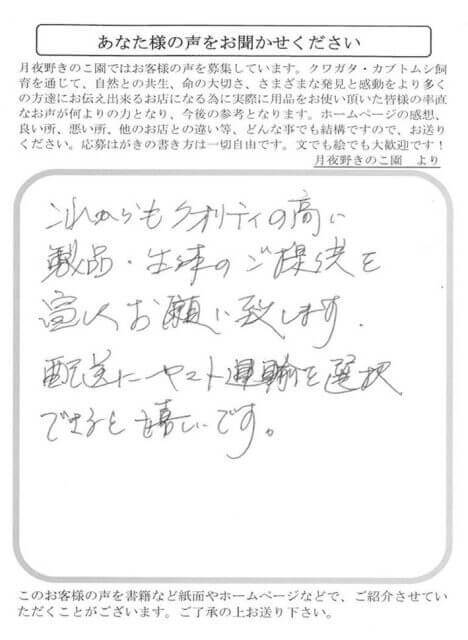 東京都 山村 様 安定供給 X Facebook はてブ LINE Pinterest コピー 2019.06.05 これからもクオリティの高い製品・生体のご提供を宜しくお願い致します。配送にヤマト運輸を選択できると嬉しいです。