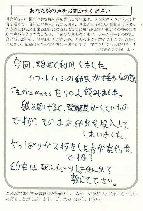 幼虫についてですが、生き物ですので明確なお答えは難しいですが