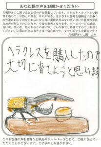 今回、菌糸ブロック(Basicではない方)を購入させて頂きました。800mlとプリンカップに詰め直したところ、すぐに再生し、1週間ほどですごくきれいな色になりました。インドグランディスとタイワンオオクワ、ネパールアンテ等に使っておりますが、成育はとても順調です。また、すぐにリピートさせて頂ければと思っています。どうぞ宜しくお願い致します。