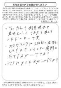 東京都 若松 様 2025 12/17 生体 70代 2021年7月14日2025年12月17日 始めまして、早速の発送ありがとうございました。幼虫の大きさにビックリ!今迄のホームセンターの幼虫はなんだったのでしょうか?流石の月夜野きのこ園さん、これからも宜しくお願いします。 生体 70代 よかったらシェアしてね! URLをコピーしました! URLをコピーしました! 千葉県 君塚 様 東京都 鈴木 様 おすすめ記事 てすと投稿です。 2025年12月23日 東京都 澤井 様 2025年12月17日 千葉県 平野 様 2025年12月15日 群馬県 はやしかわ 様 2025年11月21日 群馬県 はやしかわ 様 2025年11月21日 奈良県 栗原 様 2025年11月21日 群馬県 鈴木 様 2025年11月21日 大阪府 ささべ 様 2025年11月21日