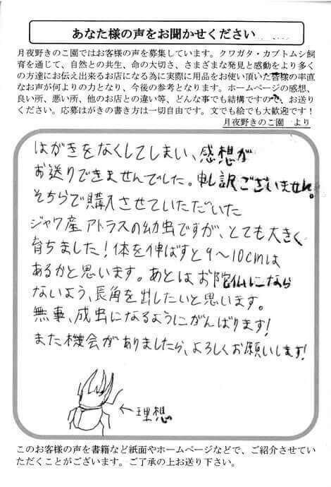 はがきをなくしてしまい、感想が