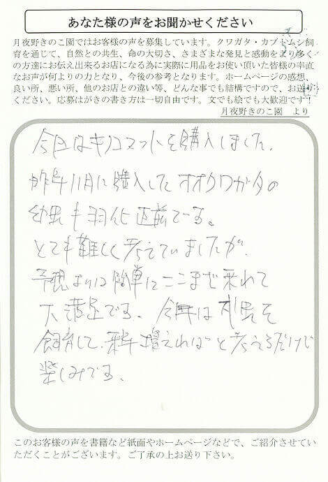 今年は成虫を飼育して、来年増えればと
