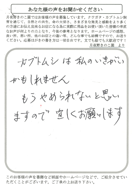 ・菌糸ビンを各サイズ併用していきたいので、また次回購入をしたい思っています。