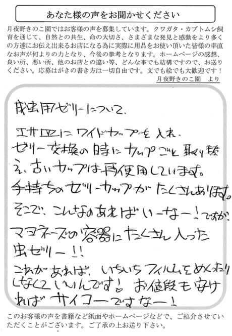 栃木県 藤田 様 黒土Mat X Facebook はてブ LINE Pinterest コピー 2021.02.242025.12.17 月夜野さんの黒土マットでニジイロクワガタの幼虫が50生まれました。初めての産卵セットだったのでビックリです!!きのこマットで幼虫飼育では大きく育ってます。