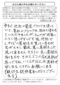 栃木県 黒﨑 様 2025 12/17 菌糸ブロック 20代 2021年6月30日2025年12月17日 菌糸ブロックを購入させて頂きました。商品は安価でクオリティが高く使い勝手がいいと感じました。送料については、かかってしまうには致し方ない点もありますが、少しでも安く抑えて頂けると他の方も購入しやすくなると思うのでよろしくお願いします。 菌糸ブロック 20代 よかったらシェアしてね! URLをコピーしました! URLをコピーしました! 茨城県 伯耆田 様 兵庫県 浅井 様 おすすめ記事 てすと投稿です。 2025年12月23日 東京都 澤井 様 2025年12月17日 千葉県 平野 様 2025年12月15日 群馬県 はやしかわ 様 2025年11月21日 群馬県 はやしかわ 様 2025年11月21日 奈良県 栗原 様 2025年11月21日 群馬県 鈴木 様 2025年11月21日 大阪府 ささべ 様 2025年11月21日