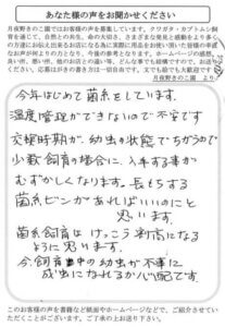 丁寧な対応ありがとうございました。クワガタの飼育を今年から初めました。今後ともお世話になると思いますのでよろしくお願いします。