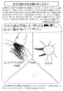 中学生のころからお世話になっております。大学院に入り、いそがしさの中、飼育が出きない日々がつづいておりましたが、標本の展示会にて、月夜野様のマットで育てたカブクワの標本コレクションをおひろめしたところ大変好評でした。高校生のころは飼育がたのしくて、標本について考えたこともありませんでしたが、標本にすることで人を感動させられるということを25才ではじめて学びました。お手ごろなおねだんで様々な昆虫を飼育できる月夜野様の製品はとてもありがたいと思いながら使わせて頂いております。