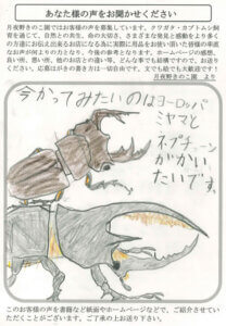 熊本県 竹内 様 2025 12/16 発酵Mat 10代 2022年9月28日2025年12月16日 いつも土をとどけてくれてありがとうございます。おかげさまで、クワガタのメス・おすがふぜんなく生まれてきました。だからこの手紙を書きました。またお手紙かきます。 発酵Mat 10代 よかったらシェアしてね! URLをコピーしました! URLをコピーしました! 千葉県 山岸 様 新潟県 傳田 様 おすすめ記事 てすと投稿です。 2025年12月23日 東京都 澤井 様 2025年12月17日 千葉県 平野 様 2025年12月15日 群馬県 はやしかわ 様 2025年11月21日 群馬県 はやしかわ 様 2025年11月21日 奈良県 栗原 様 2025年11月21日 群馬県 鈴木 様 2025年11月21日 大阪府 ささべ 様 2025年11月21日