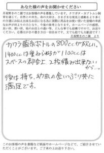 今までマット飼育で国産(自己採集)種を飼育してきました。ヒラタ・ミヤマ・ノコ・アカアシ・ヒメオオ・ツヤハダ・オニ・コルリなど…仕事で知り合った仲間からタランドゥスペアとニジイロペアを頂いたので外国産飼育にも昨年からハマりました。カワラ…すぐに傷むし入手しづらいと思っていましたが、貴園の菌糸の持ちの良さにビックリしています。本当はブロックで買う方が経済的なのでしょうがカワラの臭いが家族から不詳なので、ボトル購入しています。スペースの都合もあるので出来れば800ccのカワラもあると助かります。