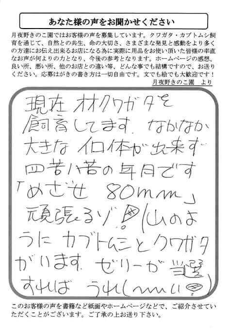 神奈川県 とがり 様 生体 X Facebook はてブ LINE Pinterest コピー 2015.10.17 現在オオクワガタを 飼育してます。なかなか 大きなイロ体が出来ず 四苦八苦の年月です 「めざせ 80mm」 頑張るぞ!(山のよ うにカブトムシとクワガタ がいます。ゼリーが当選 すればうれし~~い!)