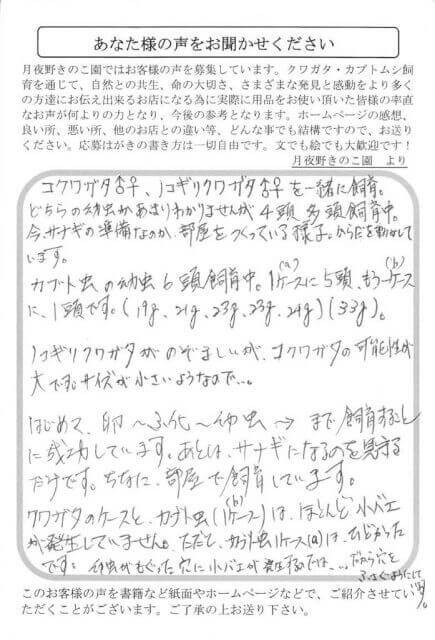 コクワガタ♂♀、ノコギリクワガタ♂♀を一緒に飼育。どちらの幼虫かあまりわかりませんが4頭・多頭飼育中。今、サナギの準備なのか部屋を作っている様子。からだを動かしています。カブト虫の幼虫6頭・飼育中。1ケース(a)に5頭、もう1ケース(b)に1頭です。(19g・21g・23g・24g)(33g)。ノコギリクワガタがのぞましいが、コクワガタの可能性が大です。サイズが小さいようなので…。はじめて、卵~ふ化~幼虫→まで飼育することに成功しています。あとは、サナギになるのを見守るだけです。部屋で飼育しています。クワガタにケースとカブト虫(1ケース・b)は、ほとんど小バエが発生していません。ただし、カブト虫(1ケース・a)はひどかったです。幼虫がもぐった穴に子バエが発生するのでは…だから穴をふさぐようにしています。