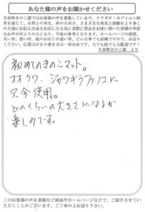 いつも、ていねいな対応でとても助かっています。今回も、自分の不手際に電話を下さり無事に受け取ることができました。今後お願いすることが増えると思いますので、今後ともよろしくお願いします。
