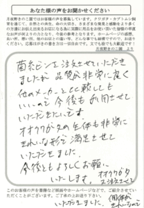 神奈川県 葛巻 様 2025 12/15 発酵Mat 50代 2024年11月28日2025年12月15日 ホームセンターの土(マット)を使用していましたが、小バエが発生したり、産卵・幼虫と満足いかない事が多かったので、この度は良いマットを使用して良い結果が出る事を期待しております。ホームページで購入させて頂き、今後も継続して購入していきたいと思います。 発酵Mat 50代 よかったらシェアしてね! URLをコピーしました! URLをコピーしました! 奈良県 武氣 様 群馬県 鈴木 様 おすすめ記事 てすと投稿です。 2025年12月23日 東京都 澤井 様 2025年12月17日 千葉県 平野 様 2025年12月15日 群馬県 はやしかわ 様 2025年11月21日 群馬県 はやしかわ 様 2025年11月21日 奈良県 栗原 様 2025年11月21日 群馬県 鈴木 様 2025年11月21日 大阪府 ささべ 様 2025年11月21日
