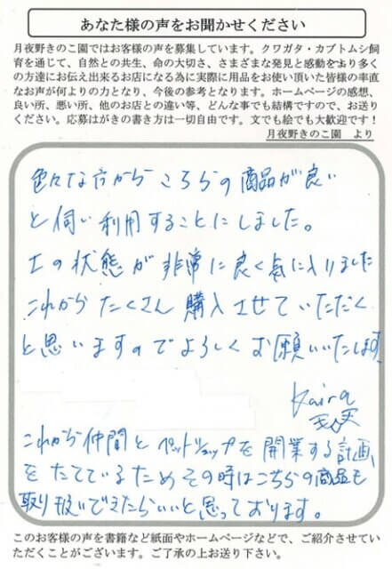 神奈川県 谷川 様 発酵Mat X Facebook はてブ LINE Pinterest コピー 2022.12.072025.12.16 色々な方からこちらの商品が良いと伺い利用することにしました。土の状態が非常に良く気に入りました。これからたくさん購入させていただくと思いますのでよろしくお願いいたします。