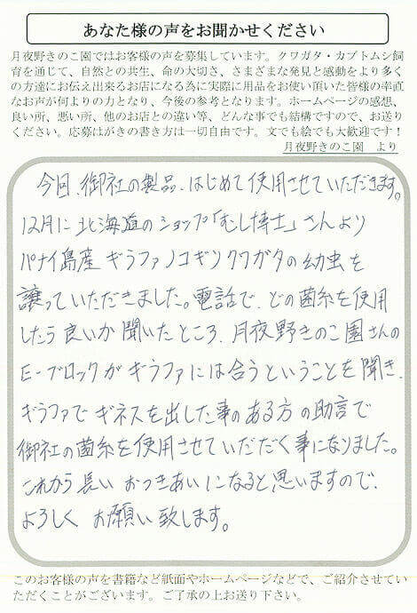 月夜野きのこ園さんのE-ブロックがギラファには合う