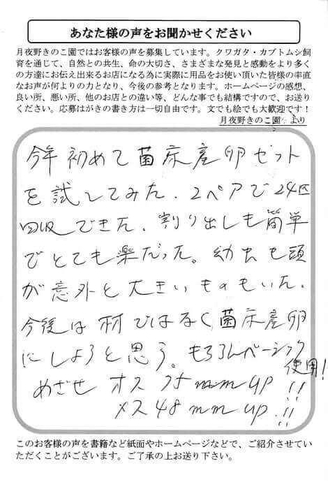 今後は材ではなく菌床産卵