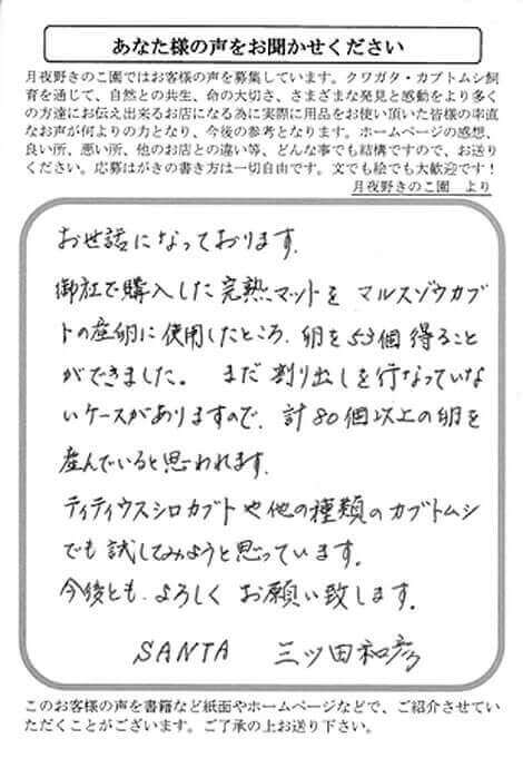 御社で購入した完熟マットをマルスゾウカブ
