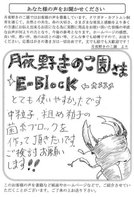 福島県 上遠野 様 2025 12/16 イラスト 40代 2022年10月29日2025年12月16日 とても使いやすかったです。中粒子・粗め粒子の菌糸ブロックを作って頂きたいです。 ご検討お願いします!! イラスト 40代 よかったらシェアしてね! URLをコピーしました! URLをコピーしました! 栃木県 提箸 様 群馬県 矢島 様 おすすめ記事 てすと投稿です。 2025年12月23日 東京都 澤井 様 2025年12月17日 千葉県 平野 様 2025年12月15日 群馬県 はやしかわ 様 2025年11月21日 群馬県 はやしかわ 様 2025年11月21日 奈良県 栗原 様 2025年11月21日 群馬県 鈴木 様 2025年11月21日 大阪府 ささべ 様 2025年11月21日