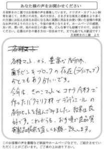 茨城県 中村 様 2025 12/17 発酵Mat 20代 2020年6月2日2025年12月17日 完熟マットと黒土マットを3:7の割り合いでブレンドして国産ミヤマ(WILD)をセットしたところ、68匹の幼虫を確認することができ、とても満足しております。今後とも利用させていただきますので、よろしくお願いいたします。 発酵Mat 20代 よかったらシェアしてね! URLをコピーしました! URLをコピーしました! 千葉県 河津 様 広島県 山岡 様 おすすめ記事 てすと投稿です。 2025年12月23日 東京都 澤井 様 2025年12月17日 千葉県 平野 様 2025年12月15日 群馬県 はやしかわ 様 2025年11月21日 群馬県 はやしかわ 様 2025年11月21日 奈良県 栗原 様 2025年11月21日 群馬県 鈴木 様 2025年11月21日 大阪府 ささべ 様 2025年11月21日