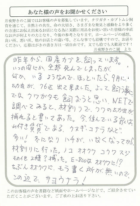 では、クワガタも飼おうと思い、NETで調べてみると、