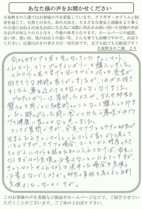 きのこマットやくわマットを使用した場合も交換の