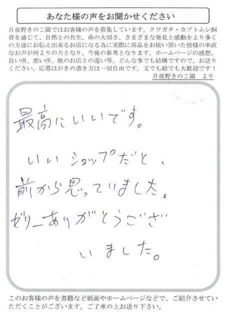 長崎県 溝上 様 昆虫ゼリー X Facebook はてブ LINE Pinterest コピー 2019.08.29 最高にいいです。いいショップだと、前から思っていました。ゼリーありがとうございました。