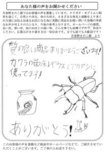 子供の頃は夏になると買ってもらったり、つかまえたものをもらったりしてカブトムシを飼育しました。でも、やり方が下手で2週間ぐらいで死なせてしまいました。小学校の高学年になると、マットや液体のエサが出回るようになり、10月までカブトムシを飼うことができました。しかし、産卵させたことはありませんでした。中学校に上がると、昆虫の飼育はしなくなり、時は流れて2009年に1頭だけ100円ショップでカブトムシの幼虫を買いました。しかし、前蛹の段階で死んでしまいました。翌年は、100円ショップで3頭の幼虫を買い、オス1頭・メス2頭がかえりました。この3頭は、同じケースで飼育しました。そして1頭だけ幼虫が育ち、翌年にメスが生まれました。そんな具合に昆虫の飼育が続いています。その後、コクワガタが自宅に来るようになり、クワガタの飼育を始めました。しかし、産卵はさせてことがありません。今思うと、産卵に挑戦すれば良かったと思うます。