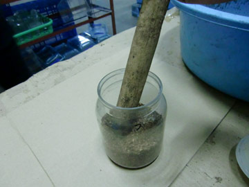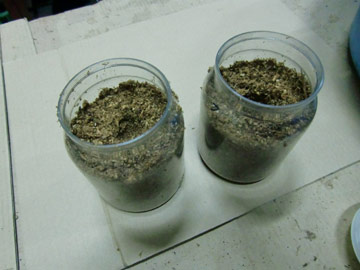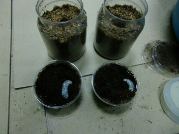 加水したほだマットの上に幼虫を置きます。