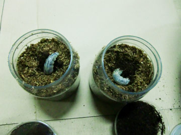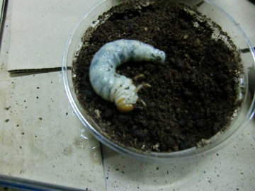 ニジイロクワガタの幼虫を用意します。